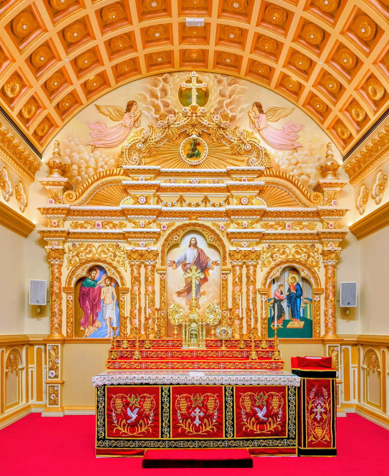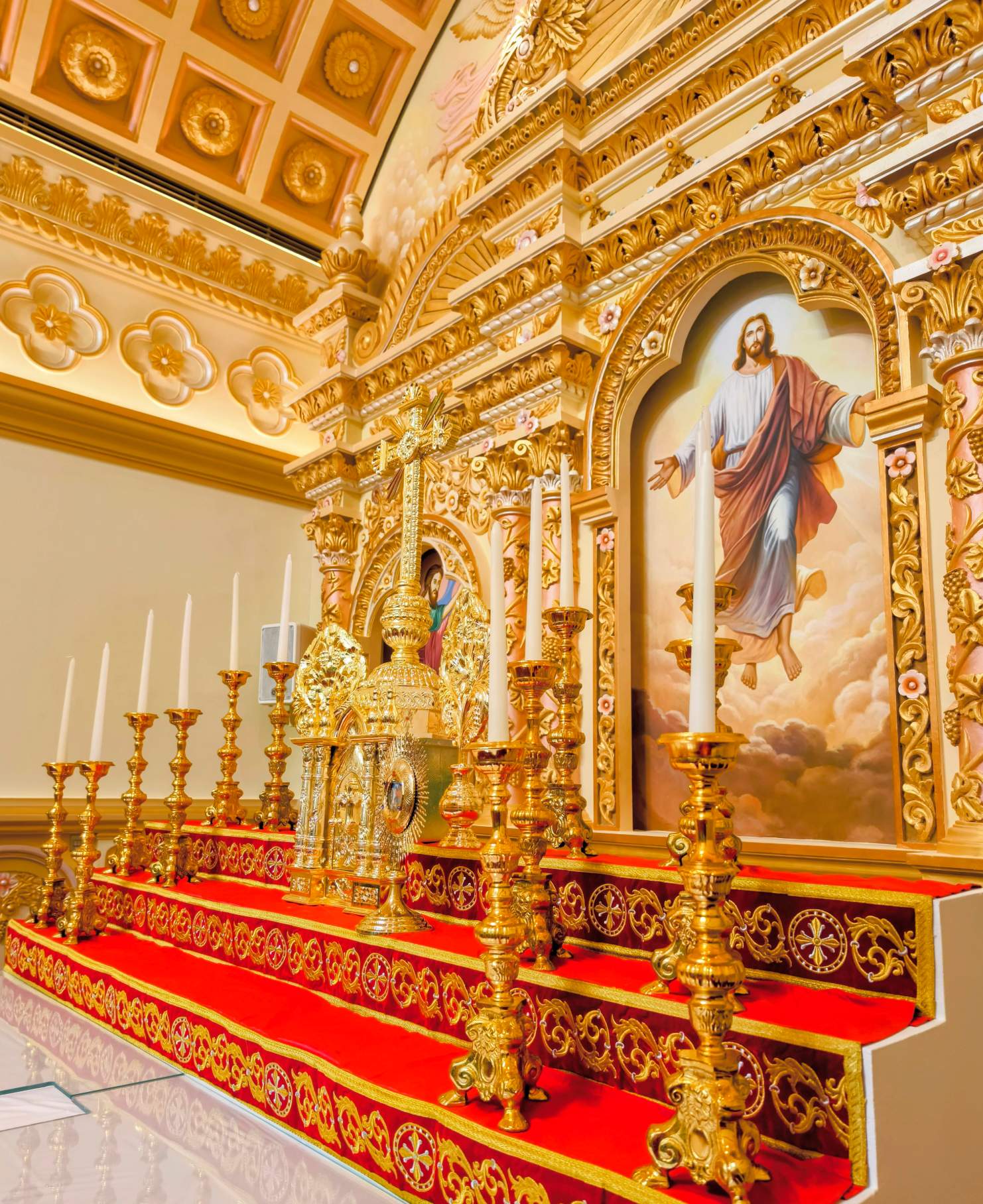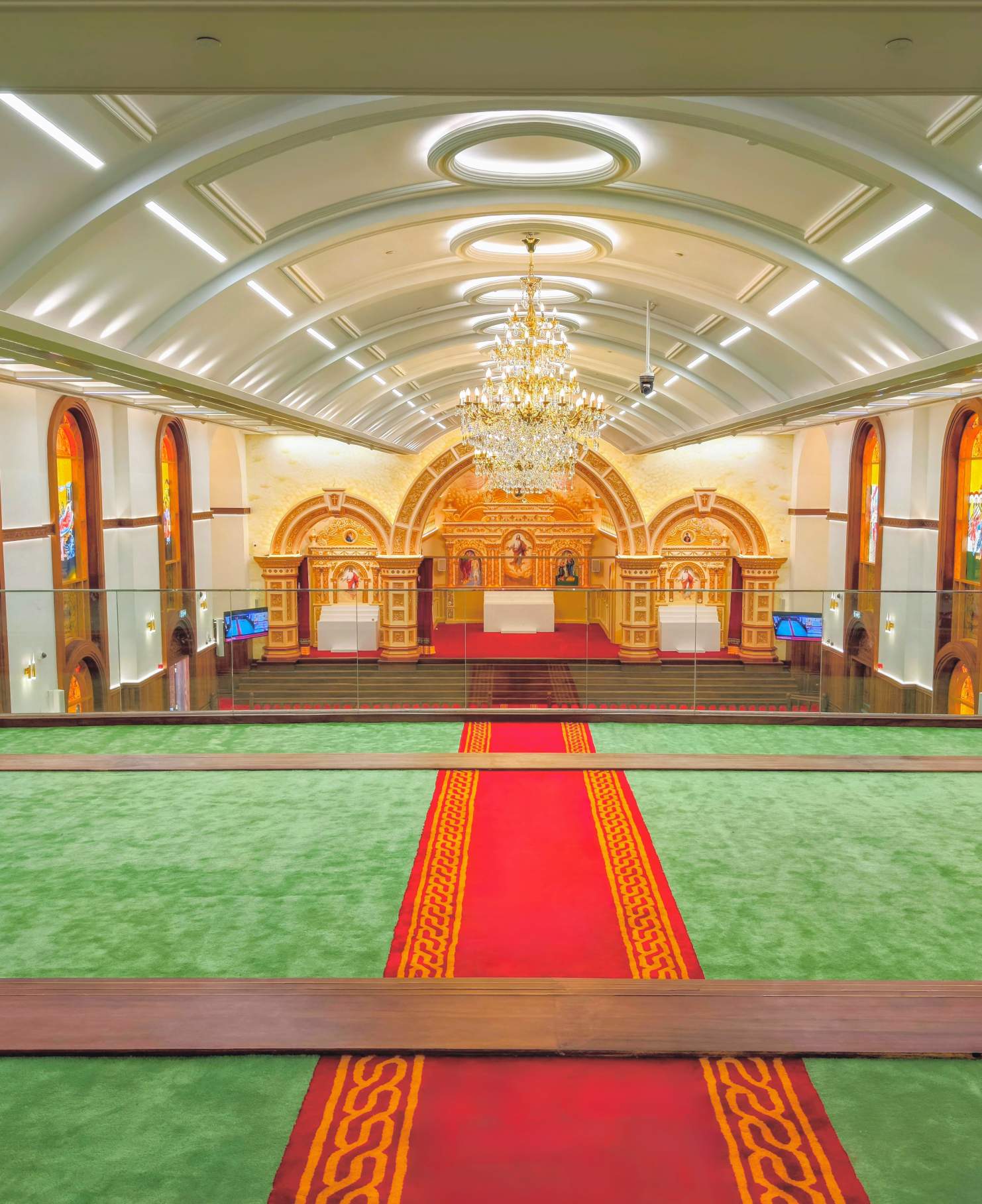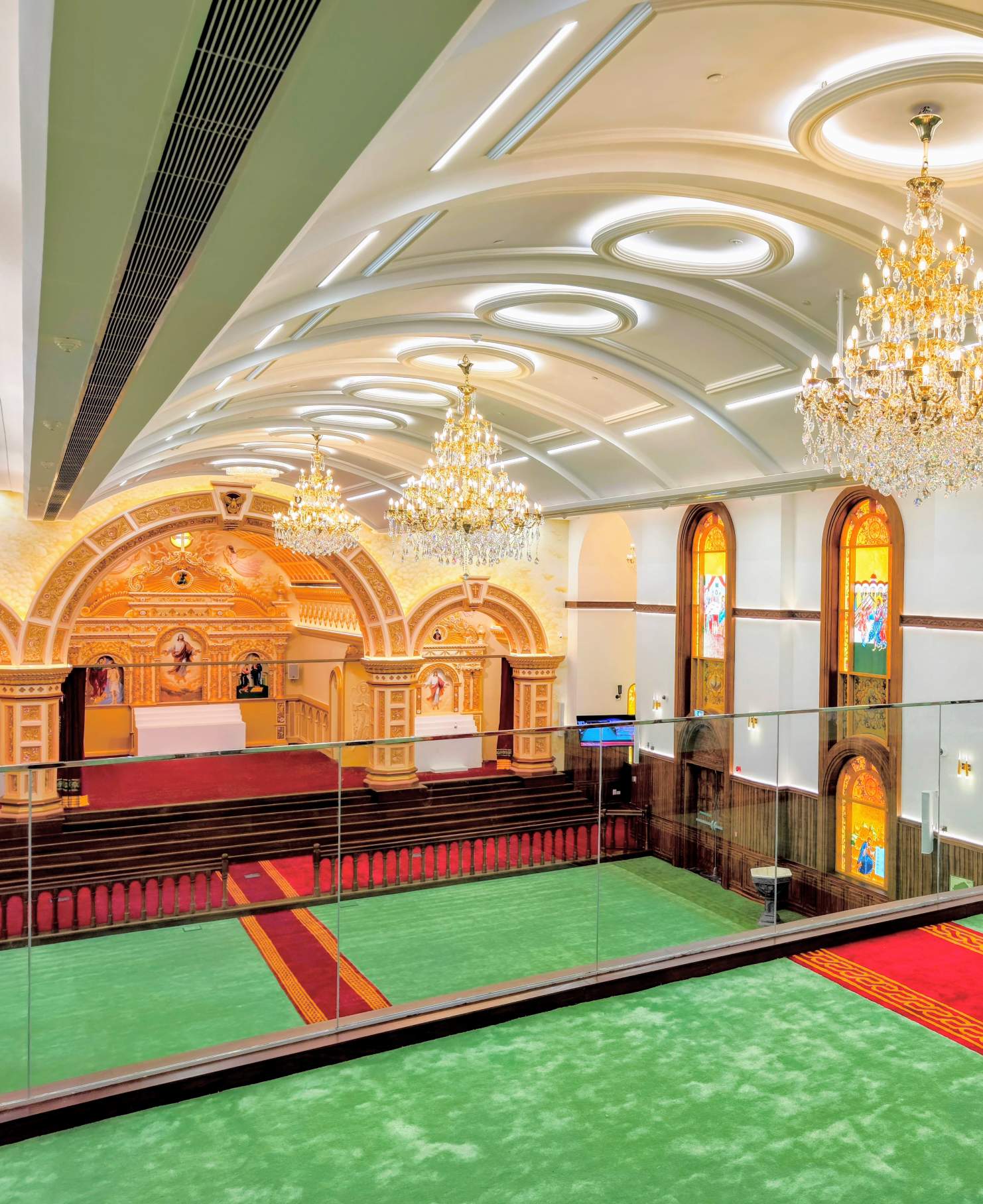 From the handcrafted entryway doors to the hand-tufted New Zealand wool carpet, every element of the church is a celebration of devotion and artistry.